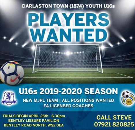 Darlaston Town (1874) FC proud to announce that at the beginning of next season they will be fielding a brand new U16’s team to play in the Saturday morning Midland Junior Premier League.